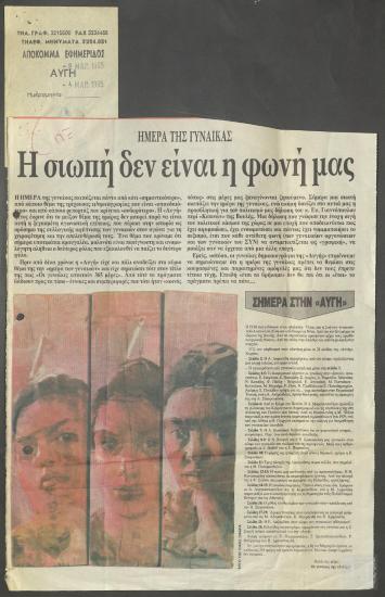 Απόκομμα εφημερίδας: Ημέρα της γυναίκας. Η σιωπή δεν είναι η φωνή μας (Αυγή, 8 Μαρτίου 1995)