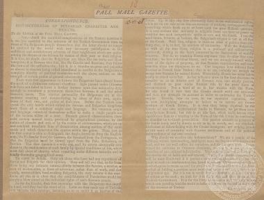 "Correspondance. Distinctiveness of Bulgarian Character and objects". Ο Koprichtencki για το ζήτημα της βουλγαρικής ιδιαιτερότητας. "Pall Mall Gazette", 10/06/1868.