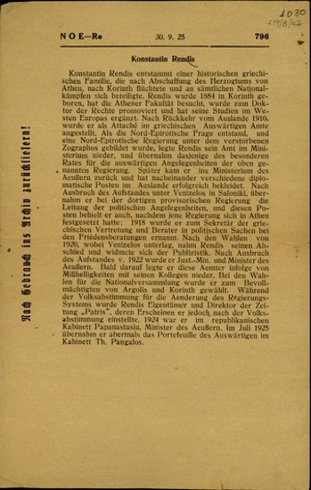 Subscription cards and postal cards about the periodical Griechische Dokumente
