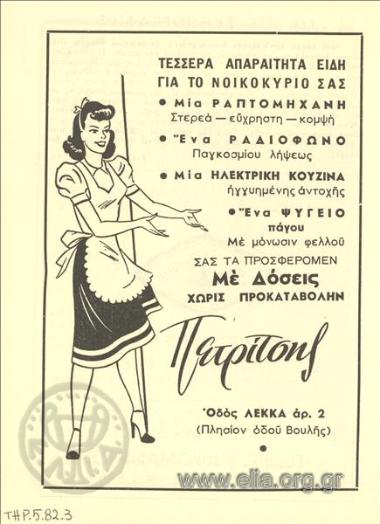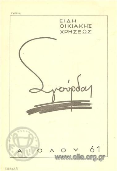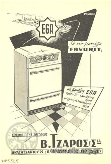 Ega: Τζάρος, Β. & Σία (γενικός αντιπρόσωπος και εισαγωγέας) Αθήνα, Δραγατσανίου 8