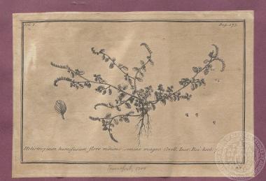"Heliotropium humifusum" Ασπρόμαυρη εικόνα με αναπαράσταση ηλιοτρόπιου, του Joseph Pitton de Tournefort. 1700