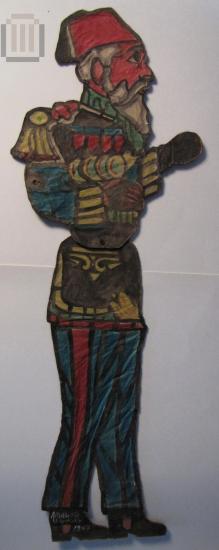 Kharaghoz as soldier (tsolias) figure shadow puppet