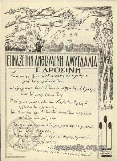 The year 1880 is the launch of the New School of Poetry as two poetry collections are published that convey exactly the spirit of change: Nikos Kampas's 'Verses' and Drosini's 'Spider's Webs'. Kostis Palamas later defines as the first stations in the poetic evolution of the new generation the collection of Papadiamantopoulos 'Trygones and Echidnai' (1878), the 'Verses' of Kamba and the 'Idylls' of Drosini: "The Trygones and Echidnai seem to say goodbye to something that is fading; the Verses of Kamba as if they were first greetings of the dawn. G. Drosini's Idylls seem to confirm it".