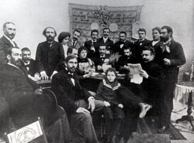 In 1886, Palamas publishes his first poetry collection under the title 'The songs of my country'.In 1895, the state commissioned him to compose the Olympic Anthem. Poets and prose writers gather around him with a burning desire for a renewal of Greek letters. These reformers, led by Palamas, supported the "demotiki" language, a simplified version of modern Greek and join their forces with Yiannis Psycharis, who in 1888 writes the prose poem 'My Journey', a milestone work in the effort to modernize Greek language. Building on the concepts of "freedom and language" of the Eptanesian School and continuing to study folk songs and oral traditions, these intellectuals are pitted against the supporters of the old regime.