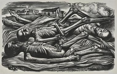 "Kefallinos reveals to us whats happening in Paris, we were totally unaware then" says Vaso Katraki later. All the next generation of engravers study with him: Tassos, Vasso Katraki, Christos Daglis, Costas Grammatopoulos, George Moschos, Telemachos Kanthos, Giannis Moralis, Lambros Orfanos. During the dark years that follow, his students take part in the Resistance through their art, printing patriotic propaganda during the war and works supporting the freedom fight during German Occupation.
