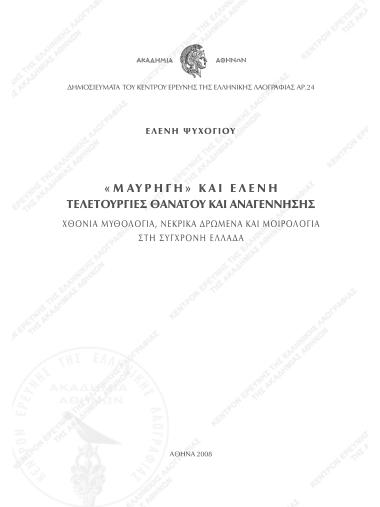 "Μαυρηγή" και Ελένη : τελετουργίες θανάτου και αναγέννησης : χθόνια μυθολογία, νεκρικά δρώμενα και μοιρολόγια στη σύγχρονη Ελλάδα