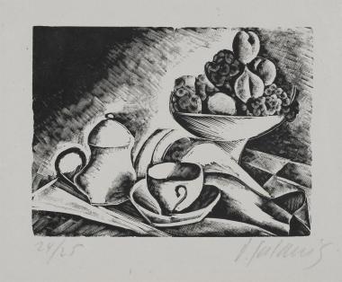 The first artists who dedicate themselves to engraving are Lykourgos Kogevinas and Dimitris Galanis. Especially the latter, who in France exhibits with Picasso and Braque, influenced by the groundbreaking art happening in the French capital, experiments with various innovative techniques. Galanis's first exhibition in Athens in 1928 is the public's first contact with engraving as an art form and it totally enchants them. Galanis' work becomes a source of reference for other artists for decades to come.