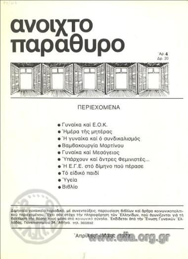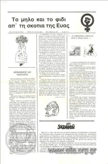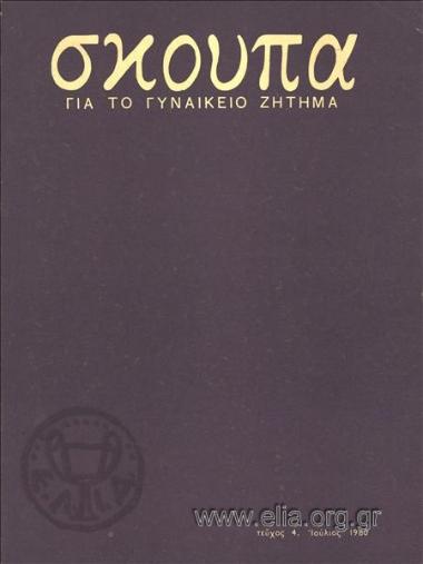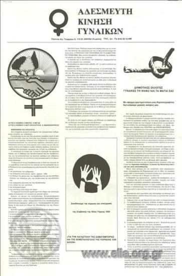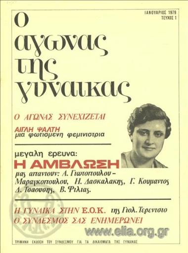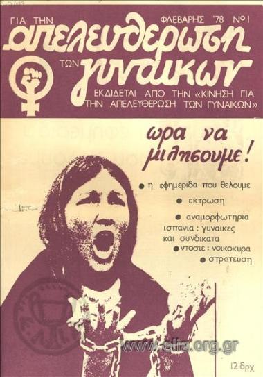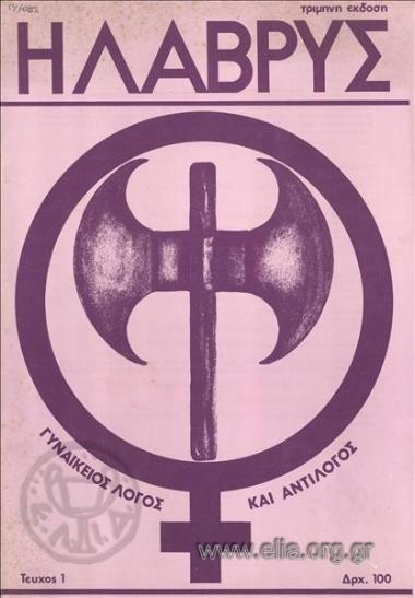 In the 70s a new radical movemen emerged, called neo-feminism, campaigning for issues to do with the female body, the right of abortion, domestic violence, gender issues and women at work. The first lesbian magazine is published, "LAVRYS - Women's Speech and Antilog", a quarterly edition that costs 100 drachmas and states on the front page: "No matter how much they buried us, we will rise again and again in the centuries".