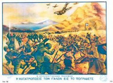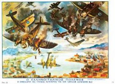 Από το φθινόπωρο του 1940 έως το καλοκαίρι του 1941, ο πόλεμος αυτός ξεπέρασε τα όρια των μαχών. Το μέτωπο επεκτάθηκε στην κοινωνία, στη γλώσσα και στη φαντασία: σε κάθε μορφή τέχνης και επικοινωνίας, από τις γελοιογραφίες και τις παρτιτούρες μέχρι τις αφίσες και τα εφήμερα τεκμήρια της καθημερινότητας.