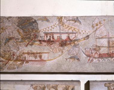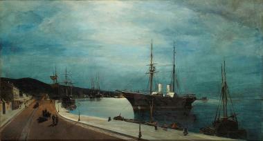 37 centuries ago, the artist who painted the famous miniature frieze of the Fleet at Akrotiri in Thera was impressed by both the aquatic element and the fleet that sailed, a symbol of the conquest of man of this environment. Modern Greek painting is known for the multitude of its seascape paintings. Leading representatives of seascape painting are Konstantinos Volanakis, who faithfully follows the Munich School and academic tradition, and Ioannis Altamouras, who leans towards impressionism.