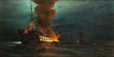 But other modern Greek artists too, such as Nicholaou, Maleas, Parthenis, as well as famous foreigner artists such as Aivazovsky, paint the calm seas of the Mediterranean, the tumultuous seas of Crimea, bathers in sunbleached beaches or lonely boats floating or seeking refuge in seaports. Other artists get their insporation from the naval battle scenes, others are captivated by the sea at night, while thunderstorms are a favorite subject and an opportunity for the artist to experiment with capturing a terrifying natural wonder.